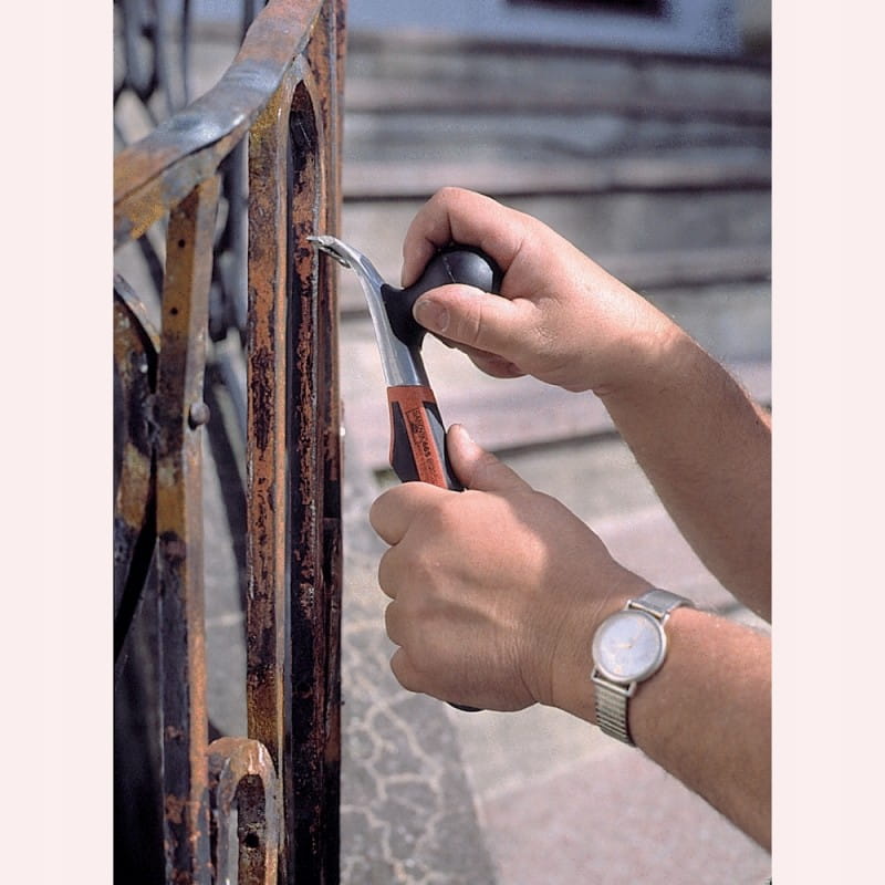 Skrobak doskonale sprawdza się przy usuwaniu farb, lakierów, klejów oraz rdzy z różnych powierzchni, takich jak drewno, metal czy beton. Wąski front narzędzia umożliwia skuteczną pracę także w miejscach o utrudnionym dostępie.