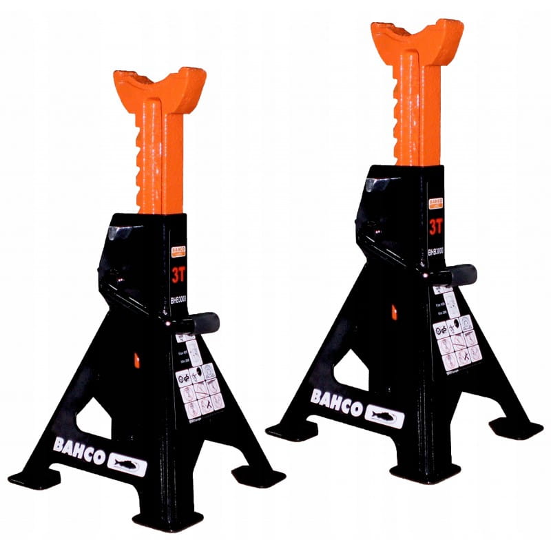 Bahco BH33000 – podpórki (kobyłki, koziołki) samochodowe do 3000kg, zestaw 2 szt. Solidne i stabilne, zapewniają bezpieczeństwo podczas serwisowania auta. Idealne do warsztatu i garażu. Sprawdź niezawodność Bahco na sklep-permetal.pl!