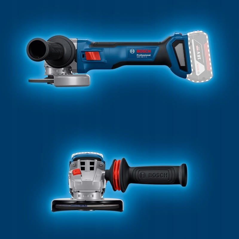 Model Bosch GWS 18V-11 S to profesjonalna szlifierka kątowa akumulatorowa, która gwarantuje wydajność równą przewodowym urządzeniom o mocy 1100 W. Dzięki technologii silnika bezszczotkowego zapewnia dłuższą żywotność, większą moc oraz lepszą efektywność pracy.