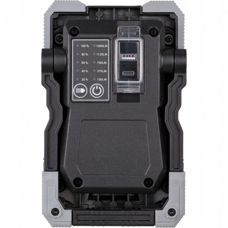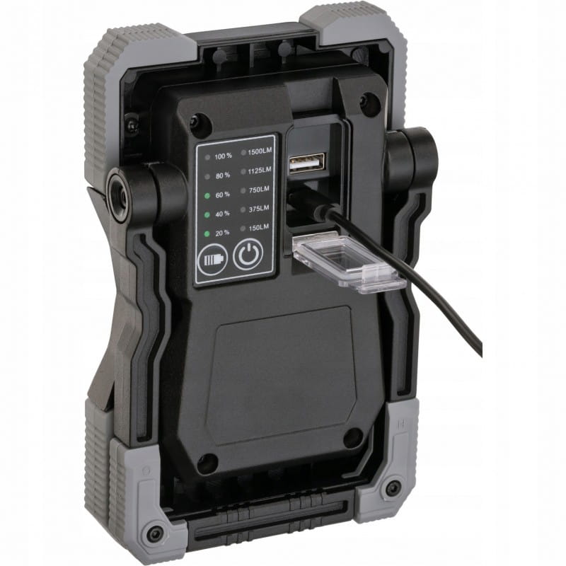 - Lampa warsztatowa ze wskaźnikiem naładowania, funkcja powerbanku do wygodnego ładowania np. smartfonów (port ładowania typu C) oraz stabilna, wielopoziomowa rama rozkładana