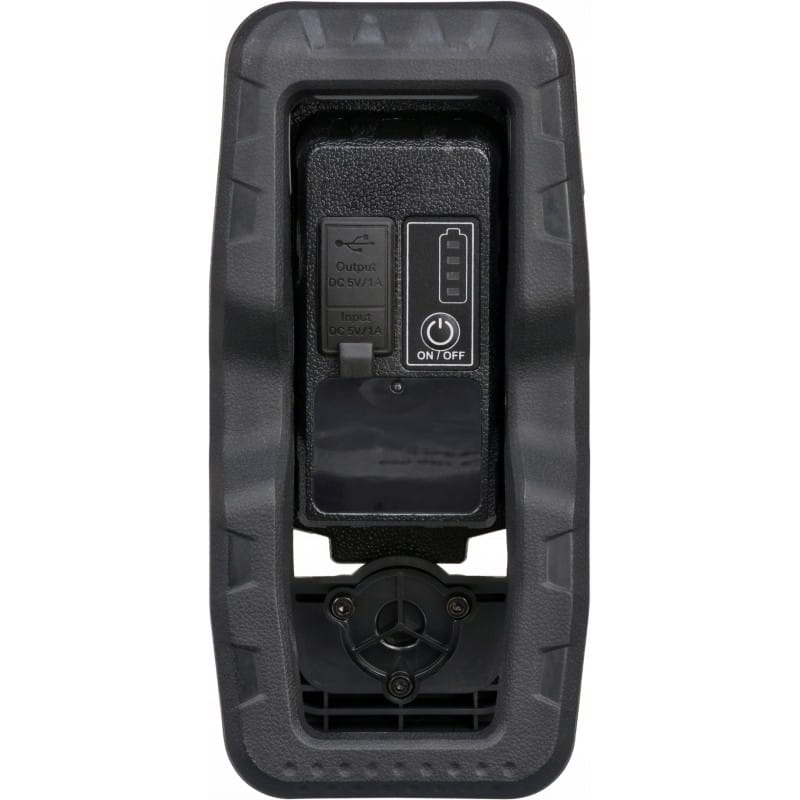 - Reflektor LED z 3 poziomami przełączania (100% - 50% - 25%) zapewniający czas świecenia do 12 godzin oraz zintegrowany powerbank USB do ładowania urządzeń z kablem USB, takich jak smartfony itp.