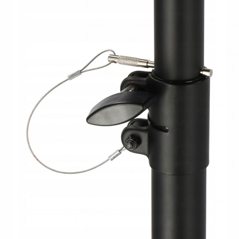 - Stojak teleskopowy oferuje wysoką nośność wynoszącą maks. 30 kg i hak do zwijania kabli, dzięki czemu można zminimalizować ryzyko potknięcia się