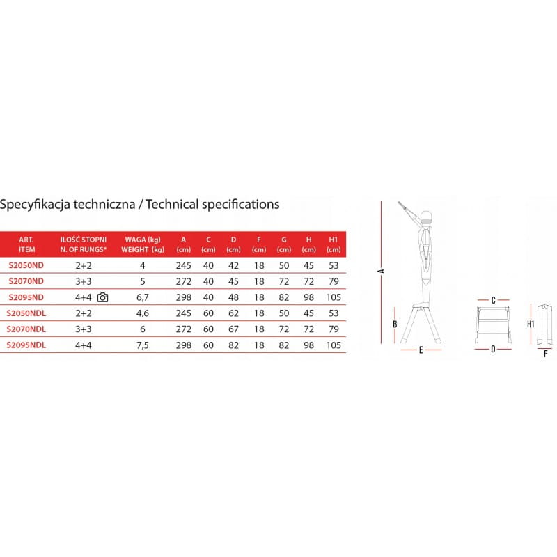 - Komfort i bezpieczeństwo pracy Dzięki ryflowanym, antypoślizgowym stopniom o szerokości 8 cm oraz powiększonej platformie roboczej, praca na wysokości staje się bezpieczna i komfortowa.