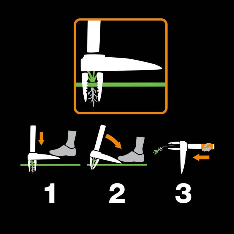 Dzięki głęboko sięgającym pazurom ze stali nierdzewnej, można skutecznie chwycić korzeń rośliny z czterech stron, co przyczynia się do efektywnego usuwania chwastów.
