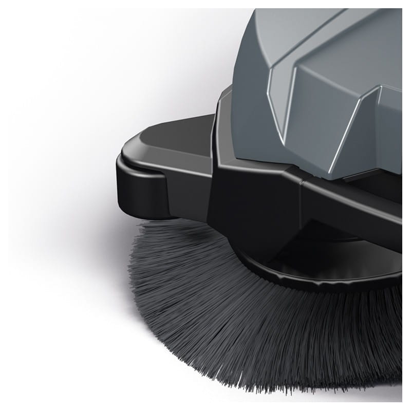 - System szczotkujący działa tak samo jak w zamiatarkach z serii 400. Dodatkowym atutem jest możliwość pracy przy wykorzystaniu silnika napędzanego akumulatorem (okres pracy wynosi około 90 min, czas ładowania około 7 godzin). Komfortowa i cicha praca zamiatarki pozwala na zwiększenie wydajności i pracę na większych powierzchniach.