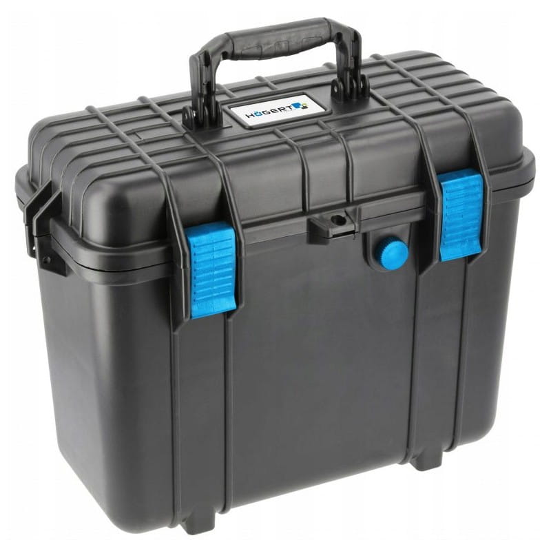 Hermetyczna skrzynka narzędziowa przeznaczona jest do transportu podatnych na uszkodzenia produktów w ekstremalnie trudnych warunkach. Dzięki swym właściwościom skrzynka Högert Technik doskonale sprawdzi się podczas transportu takich produktów jak sprzęt fotografi czny, optyczny, laserowe urządzenia pomiarowe, elektronarzędzia, broń czy sprzęt wędkarski. Znajdzie zastosowanie w sporcie typu off-road, żeglarstwie, wędkarstwie, czy też w branży fotografi cznej i budowlanej.