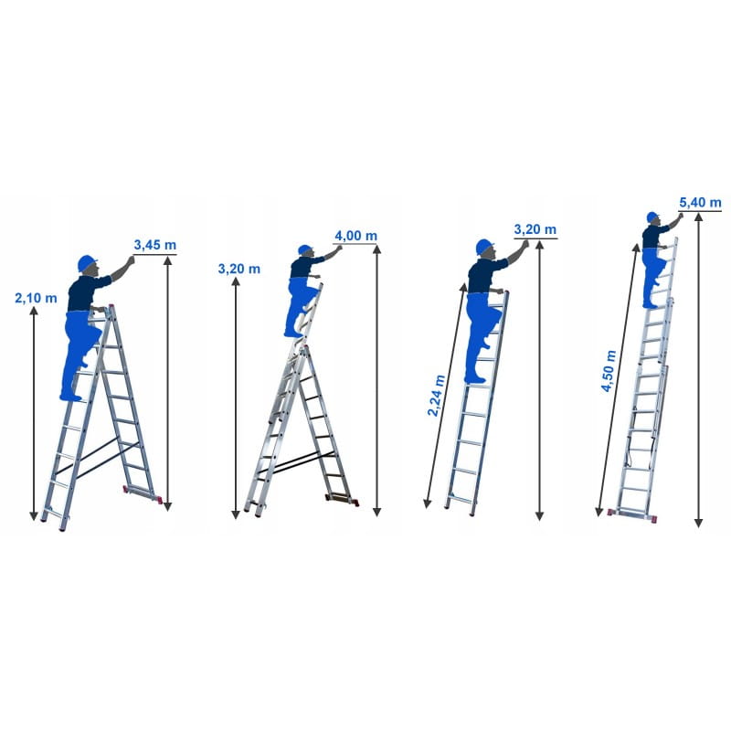 - Wszechstronność: Trzy funkcje w jednym produkcie - przystawna, rozsuwana i wolnostojąca drabina.
