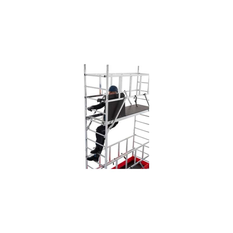 - Antypoślizgowe szczeble – bezpieczne wchodzenie od wewnętrznej strony rusztowania