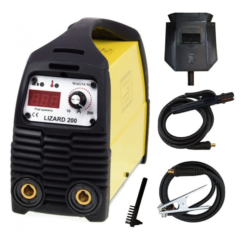 Urządzenie inwerterowe LIZARD 200 II marki MAGNUM jest lekkim, przenośnym źródłem energii. Służy do spawania elektrodami otulonymi różnych gatunków stali niestopowych, niskostopowych, wysokostopowych, nierdzewnych, żaroodpornych, miedzi, żeliwa. Urządzenie charakteryzuje się dużą sprawnością 200 A/60% oraz znakomitą charakterystyką łuku dla elektrod rutylowych i zasadowych.