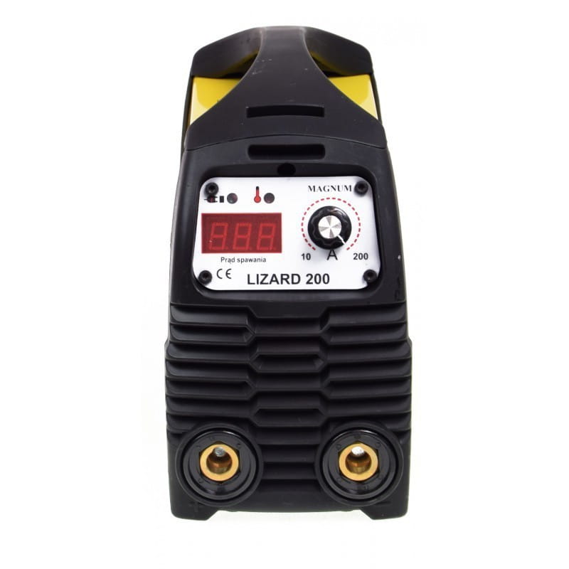 Urządzenie inwerterowe LIZARD 200 II marki MAGNUM jest lekkim, przenośnym źródłem energii. Służy do spawania elektrodami otulonymi różnych gatunków stali niestopowych, niskostopowych, wysokostopowych, nierdzewnych, żaroodpornych, miedzi, żeliwa. Urządzenie charakteryzuje się dużą sprawnością 200 A/60% oraz znakomitą charakterystyką łuku dla elektrod rutylowych i zasadowych.