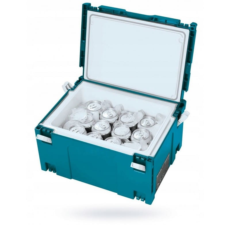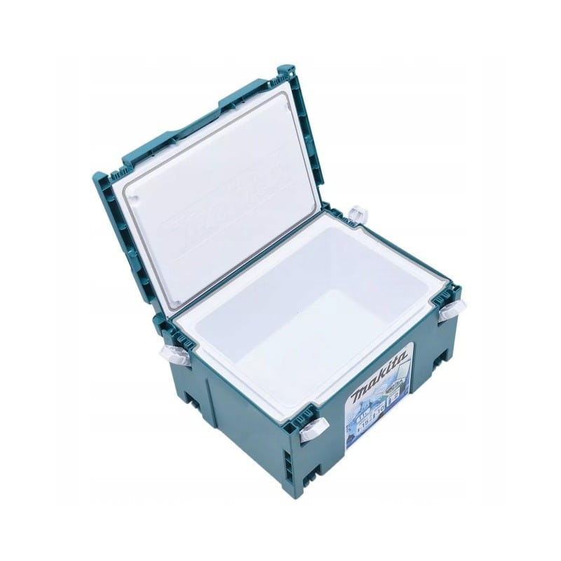 Dzięki pełnej kompatybilności z systemem MAKPAC, lodówka może być bezpiecznie łączona z innymi walizkami Makita, tworząc stabilny i uporządkowany zestaw transportowy. Wzmocniona obudowa, solidne zatrzaski oraz ergonomiczne uchwyty zapewniają trwałość i wygodę codziennego użytkowania.