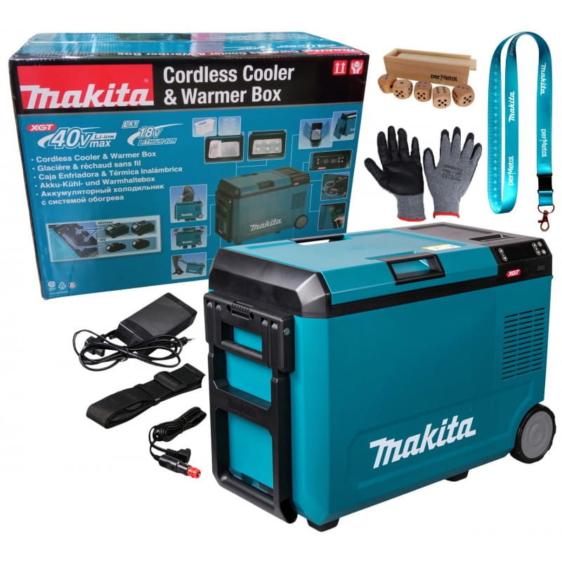 Makita CW004G to wygodne, solidne i wielofunkcyjne urządzenie, które spełni oczekiwania użytkowników potrzebujących niezawodnego chłodzenia oraz ogrzewania żywności i napojów. Wszechstronne zasilanie, wysoka pojemność i trwałość czynią ją znakomitym towarzyszem pracy, wypraw outdoorowych i kempingowych.