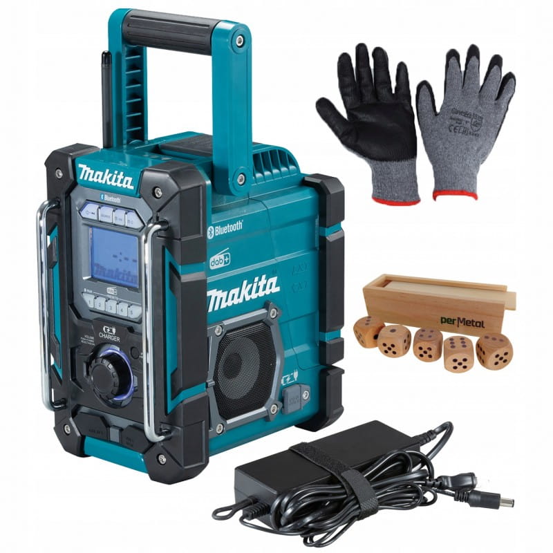 Akumulatorowy odbiornik DMR301 radiowy z wbudowaną ładowarką akumulatorów Li-ion CXT® (10,8 V / 12 V max) oraz LXT® (14,4 V / 18 V) z klasą izolacji IP64. Radio jest zasilane akumulatorami Li-ion 12 V max 18 V oraz z zasilacza. Wyposażone w Bluetooth klasy 2. Wyposażone w port AUX oraz 2 porty USB umożliwiające ładowanie urządzeń mobilnych. Podświetlany wyświetlacz cyfrowy z funkcją wyświetlania informacji o stanie ładowania akumulatora. Możliwośc odbioru stacji radiowych FM lub DAB/DAB+ (odbiór stacji w formie cyfrowej) Posiada wbudowany otwieracz do butelek umieszczony w tylnej części obudowy.