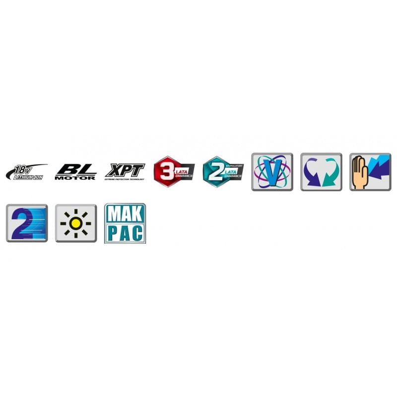 - Dostarczany w walizce systemowej MAKPAC z 2 akumulatorami BL1830B (18 V / 3,0 Ah) i ładowarką