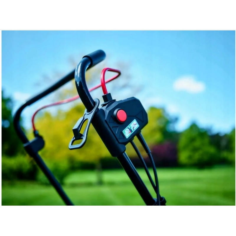 - Szerokość koszenia wynosi 37cm, a regulowana, 3-stopniowa wysokość koszenia mieści się w zakresie od 20 do 55mm. Ergonomiczna rękojeść z szybkomocującymi dźwigniami blokującymi zapewnia komfort i stabilność podczas pracy.