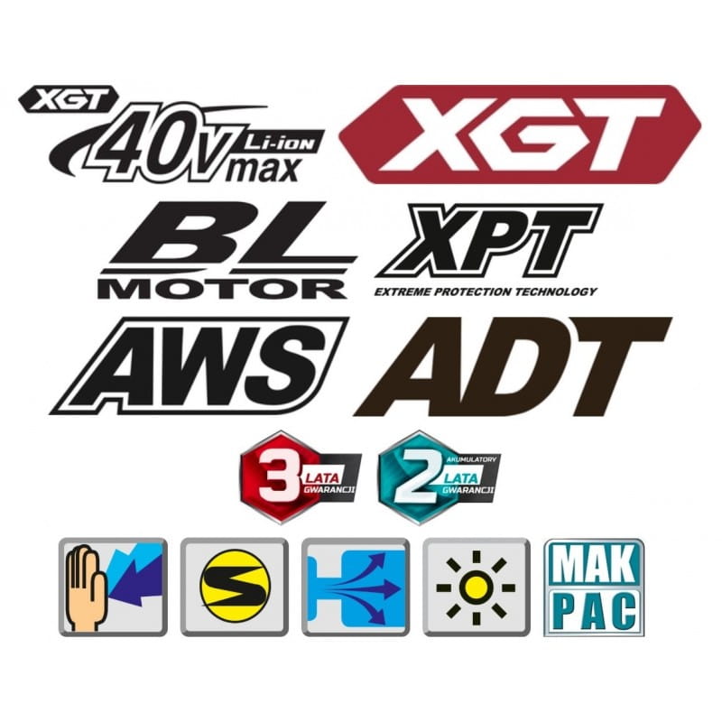 - Typ akumulatorów: Li-ion (XGT / LXT - z opcjonalnym adapterem ADP10 - brak w zestawie)