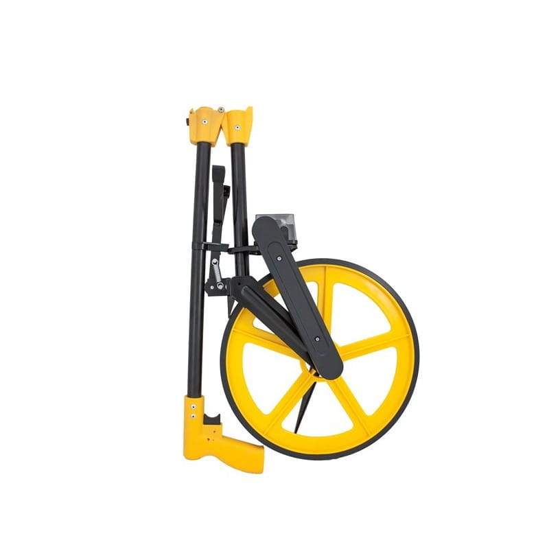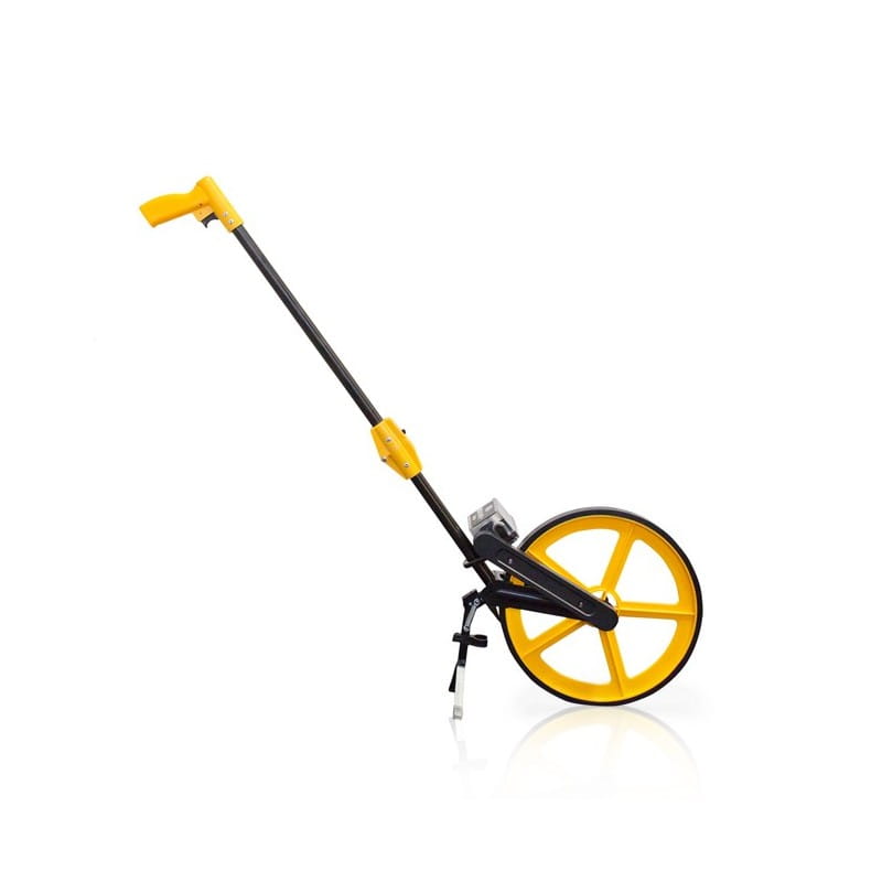Składany uchwyt umożliwia zmniejszenie wymiarów drogomierza do transportu i przechowywania. Stabilna, rozkładana stopka oraz hamulec zwiększają komfort pracy. Koło wykonane z tworzywa sztucznego w ostrzegawczym żółtym kolorze poprawia widoczność w terenie.