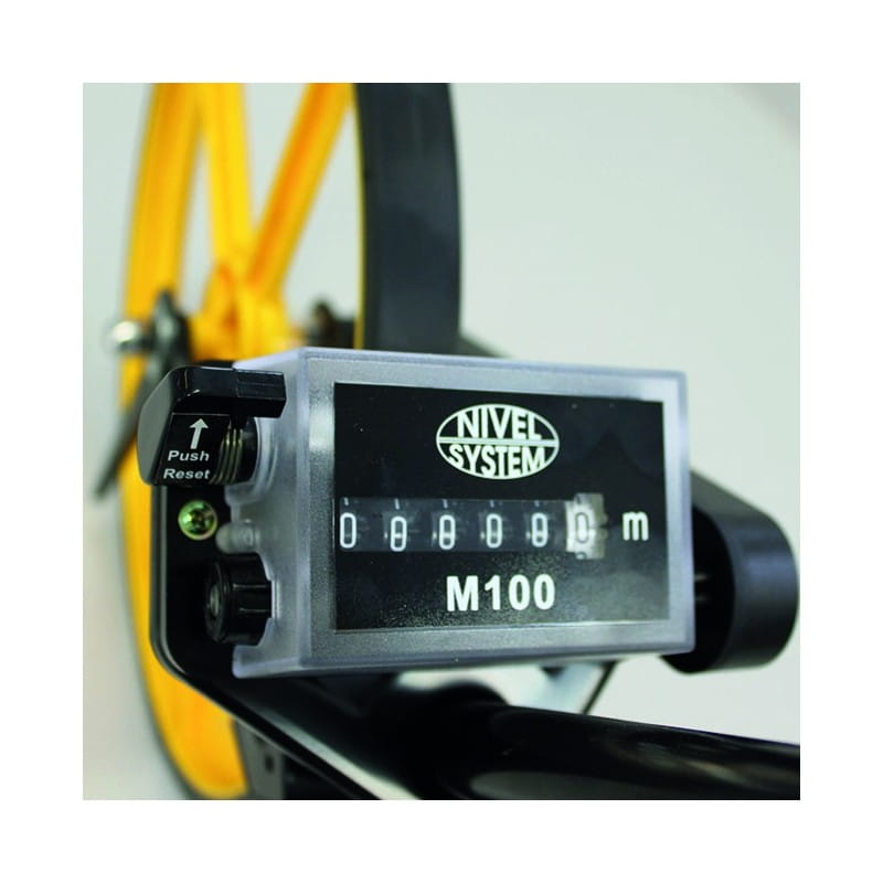 Nivel System M100 to drogomierz (koło pomiarowe) z kołem o obwodzie 1 m, przeznaczony do precyzyjnych pomiarów w terenie.