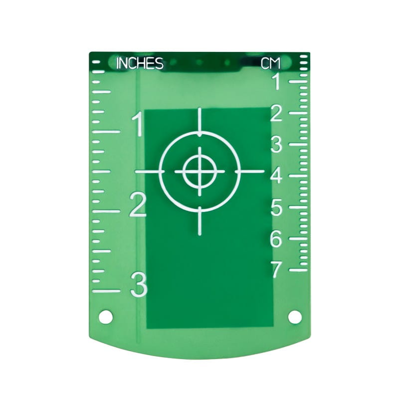 Tarczka celownicza do laserów z zieloną wiązką ułatwia precyzyjne ustawienie i odczyt linii laserowej podczas pomiarów. Zwiększa widoczność wiązki w jasnych pomieszczeniach oraz na zewnątrz, umożliwiając dokładne określenie poziomu i wysokości. Wykonana z trwałego materiału, odporna na uszkodzenia, stanowi praktyczne akcesorium do pracy z laserami liniowymi i rotacyjnymi.