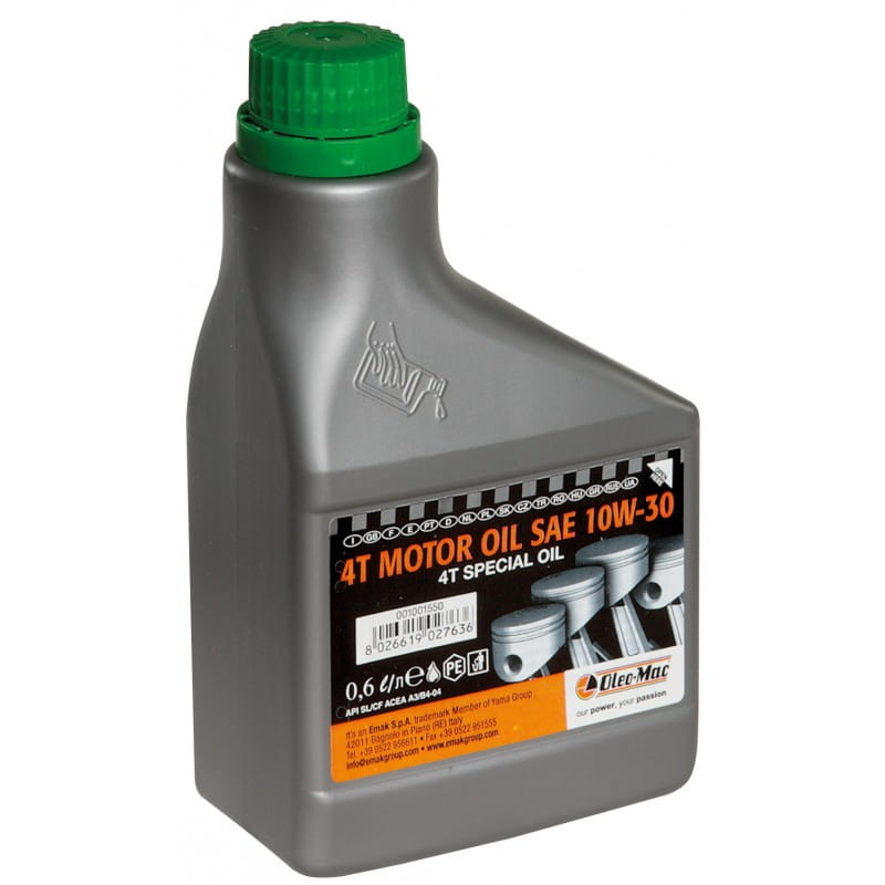 Wysokiej jakości olej mineralny Oleo-Mac SAE10W-30 (600ml) do silników czterosuwowych, chłodzonych powietrzem i wodą, stosowanych w ogrodnictwie. Olej zawiera specjalną mieszankę dodatków, które sprawiają, że posiada doskonałe właściwości jako detergent, dyspergator, antyutleniacz, a także ochrona przed korozją i zużyciem. Przewyższa specyfikację: API SG/CE, MIL - l - 2104 D, MIL - l - 46152 C.