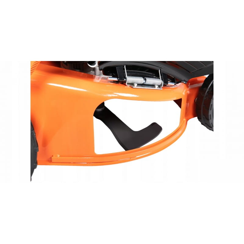 - Zarówno dźwignia stopu oraz napędu dociskane są do ergonomicznego, miękkiego uchwytu, który ma za zadanie redukować drgania podczas pracy kosiarki.