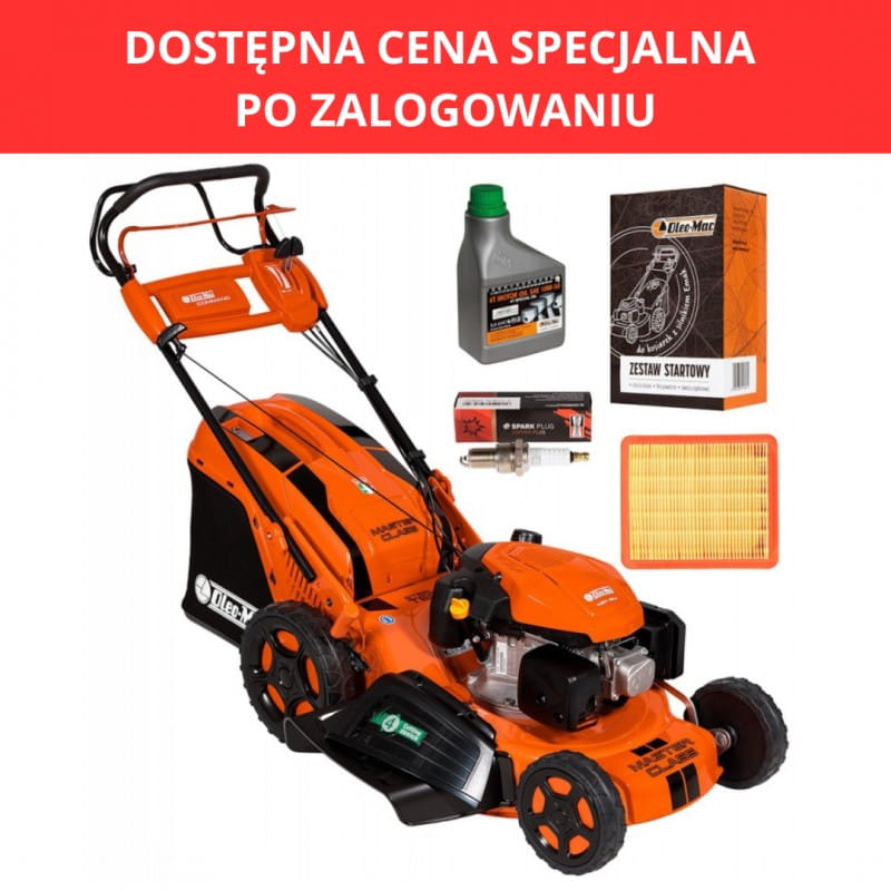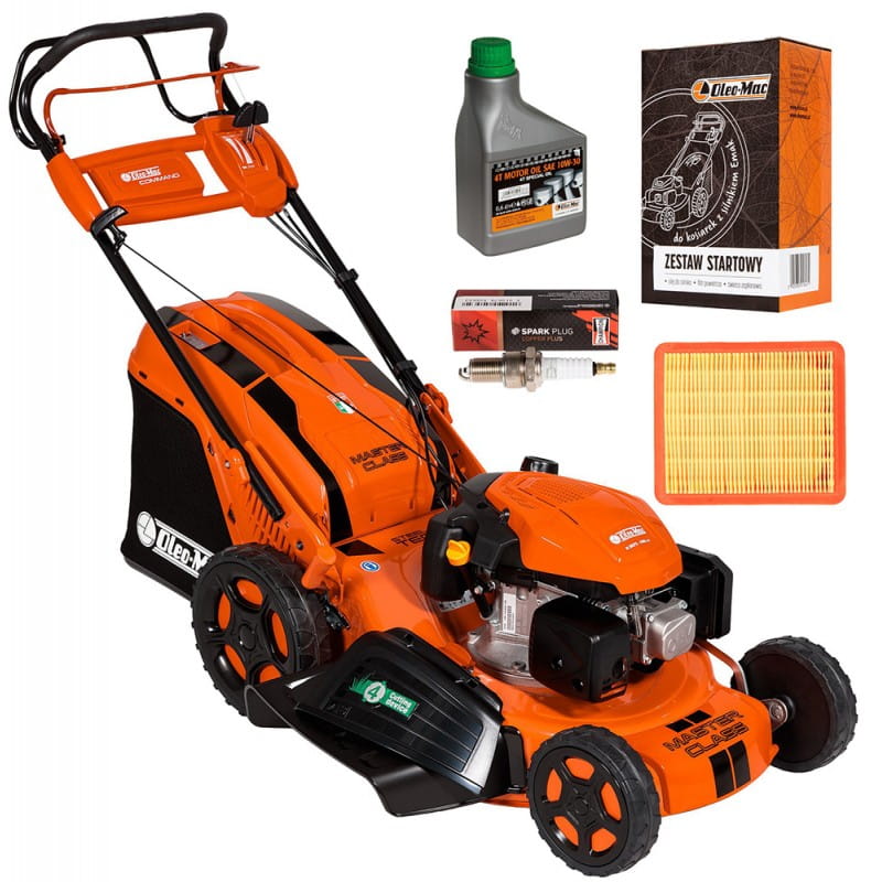 W zestawie: kosiarka Oleo-Mac GMC 53 VK Allroad 4, standardowe wyposażenie fabryczne oraz zestaw startowy GRATIS.