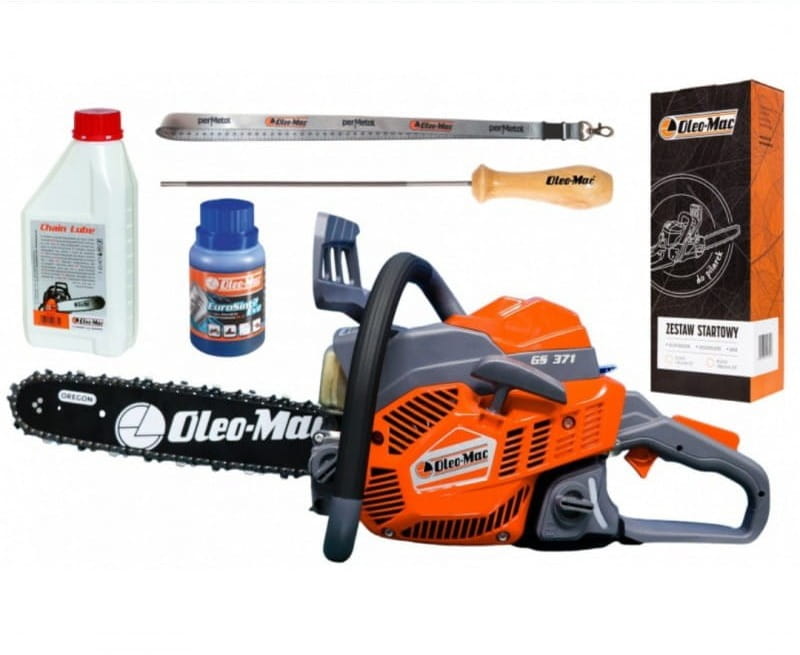 W zestawie: pilarka Oleo-Mac GS 371, zestaw startowy GRATIS oraz smycz z miarą 1 m GRATIS.