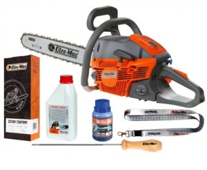 W zestawie: pilarka Oleo-Mac GSH 510 18", standardowe wyposażenie fabryczne, zestaw startowy GRATIS oraz smycz z miarą 1 m GRATIS.