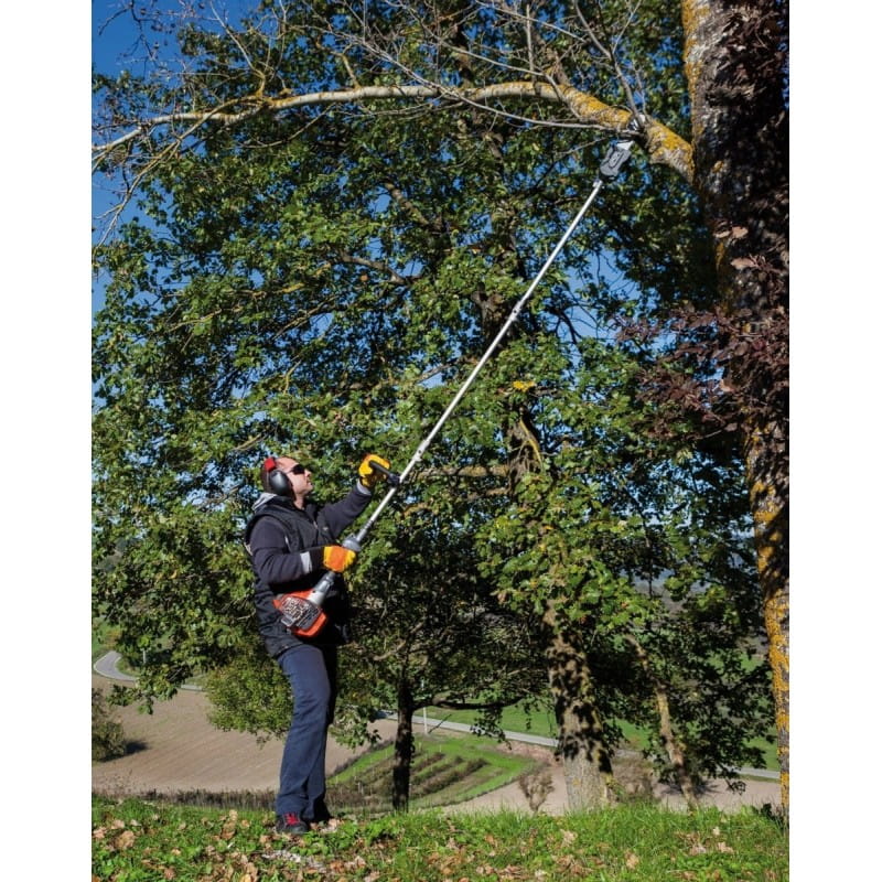 - Zwiększony zasięg pracy – Dzięki długości 100 cm, przedłużenie umożliwia dotarcie do wyżej położonych gałęzi i żywopłotów, eliminując konieczność korzystania z drabiny.