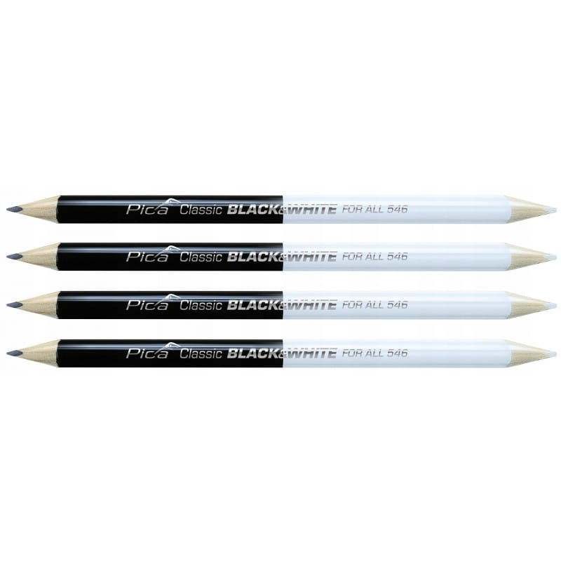 Pica 54624 – komplet 4 uniwersalnych ołówków czarno-białych do znakowania na różnych powierzchniach: drewno, metal, beton, plastik. Wysoka trwałość, wygodny chwyt, idealne dla fachowców i majsterkowiczów. Praktyczne i solidne narzędzie do pracy.