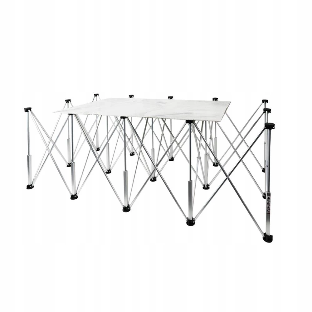 Składana konstrukcja aluminiowa i udźwig do 300 kg zapewniają wygodę pracy oraz łatwy transport.