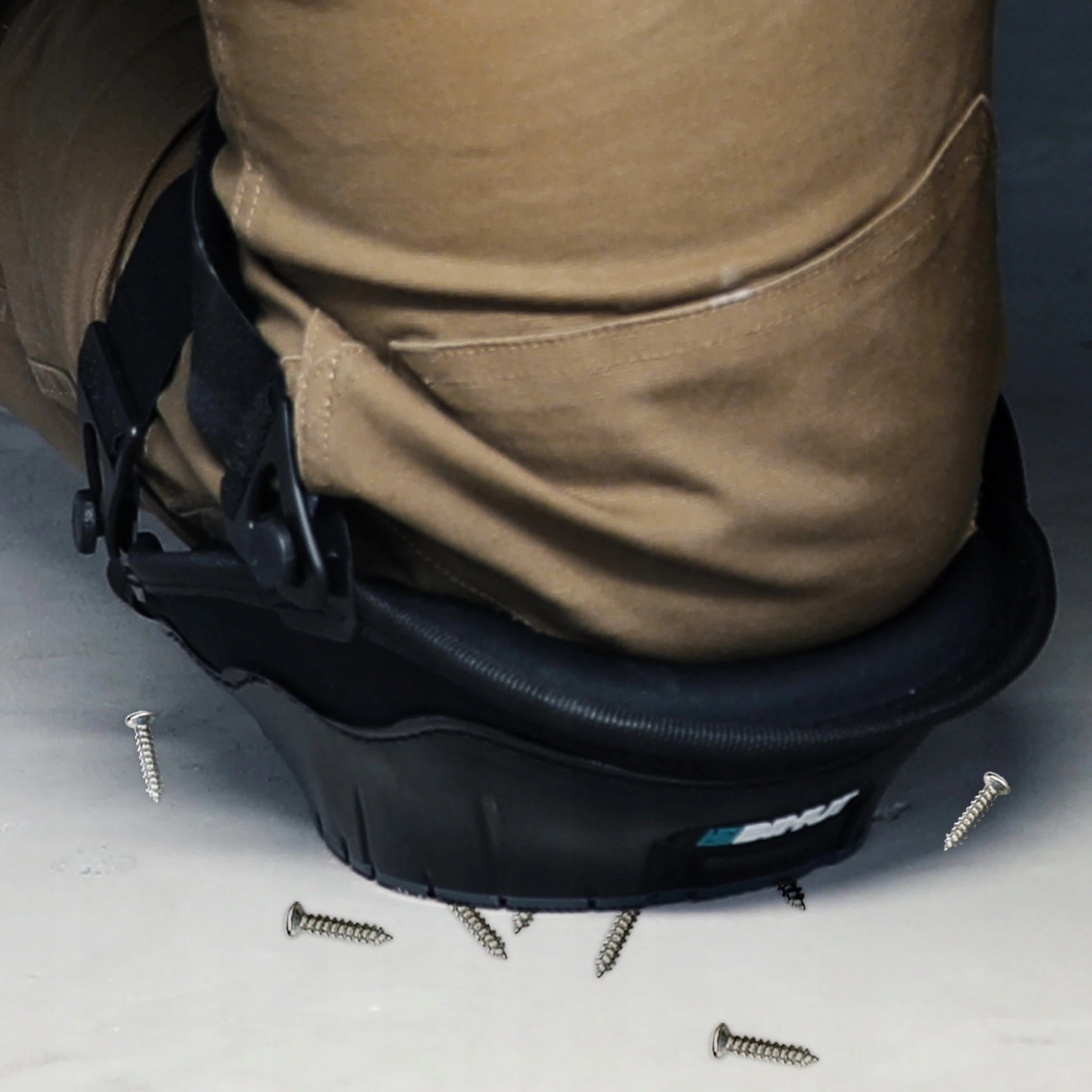 Antypoślizgowa oraz wodoodporna powierzchnia zwiększa stabilność na różnych podłożach i chroni przed wilgocią. Konstrukcja nakolanników zabezpiecza kolana przed ostrymi elementami, takimi jak gwoździe czy szkło.