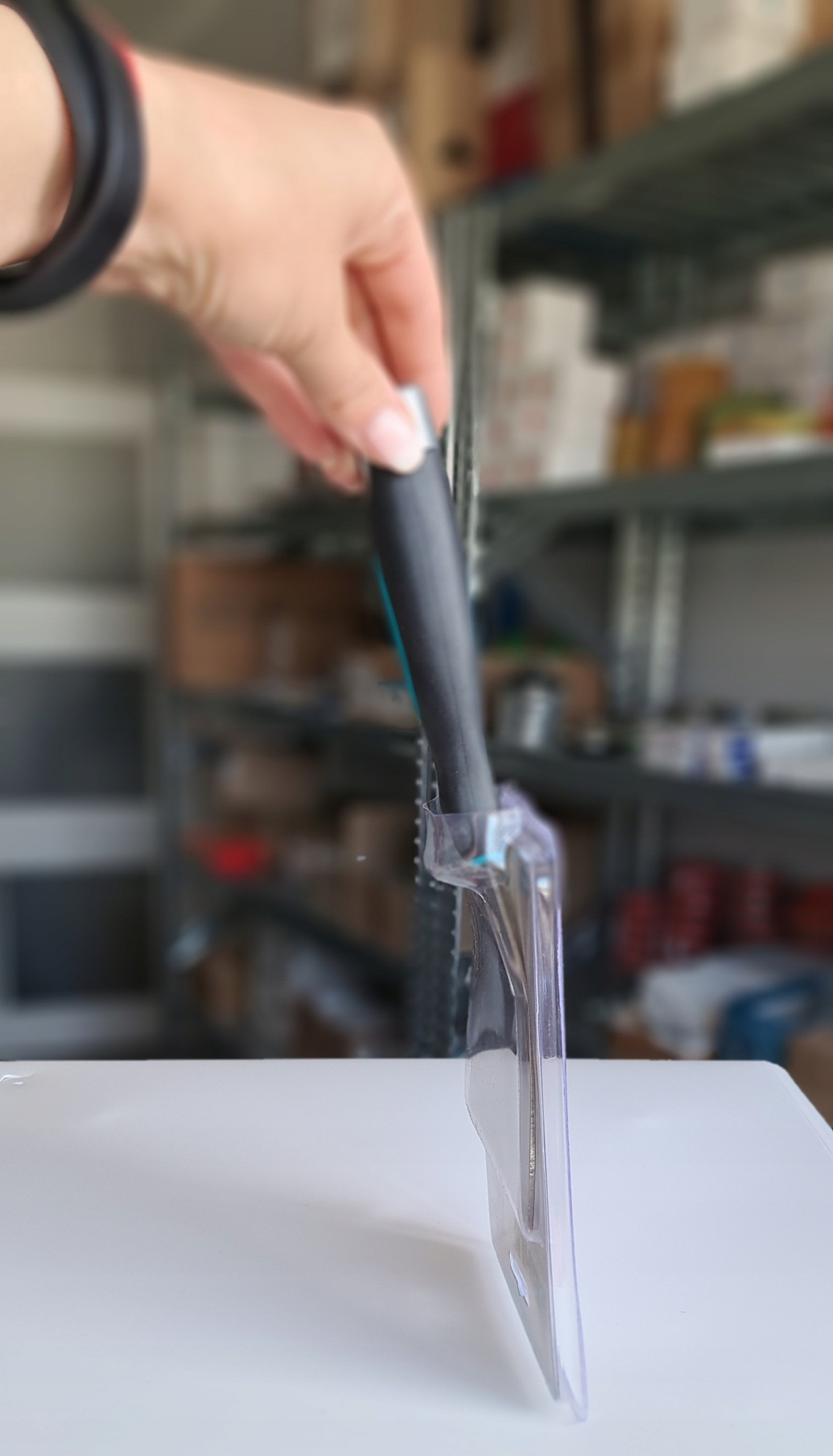 Specjalnie wyprofilowana, podgięta szpachelka ułatwia podważanie płytek oraz oddzielanie ich od podłoża, co znacząco zwiększa skuteczność pracy.