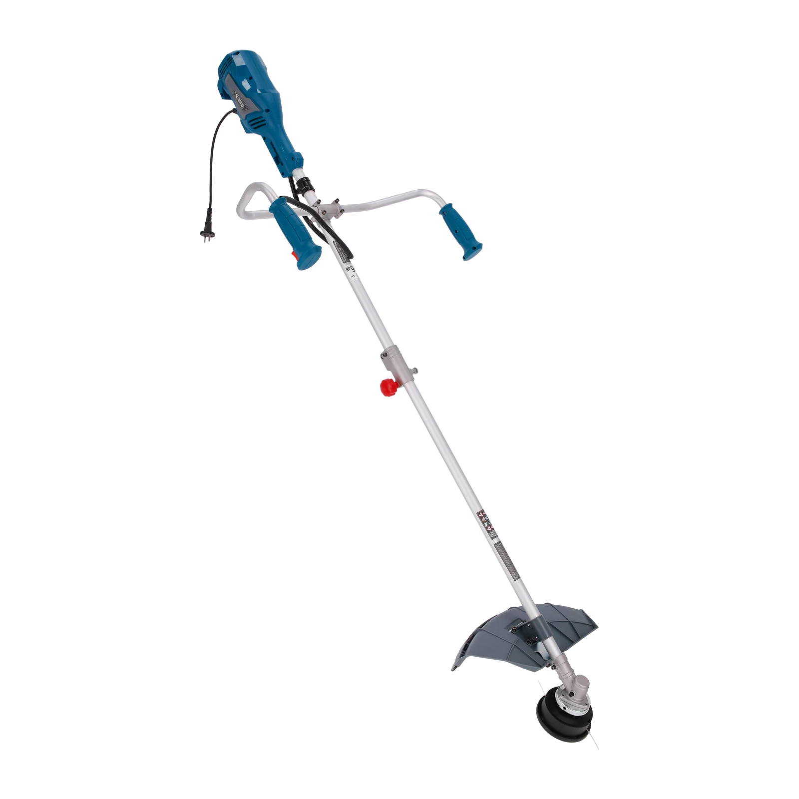 Podkaszarka została wyposażona w blokadę przypadkowego uruchomienia oraz osłonę ochronną, która zabezpiecza użytkownika przed odrzutem materiału.