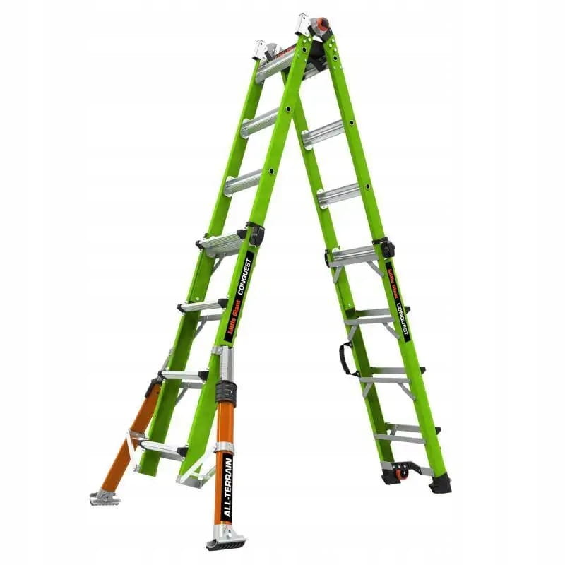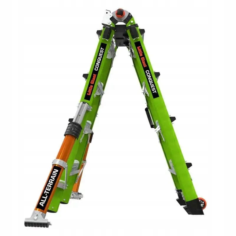 Drabina Little Giant Conquest 2.0 to wszechstronny model dla profesjonalistów i wymagających użytkowników. Wykonana z nieprzewodzącego włókna szklanego, doskonale sprawdza się przy pracach instalacyjnych i elektrycznych. Dzięki regulowanym wspornikom i obrotowej podstawie uzyskuje stabilność nawet na nierównych powierzchniach, stopniach i w trudnych warunkach.