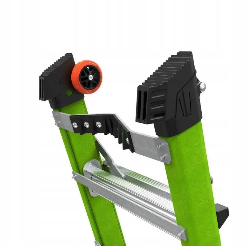 Zintegrowane kółka ułatwiają transport i przemieszczanie drabiny.