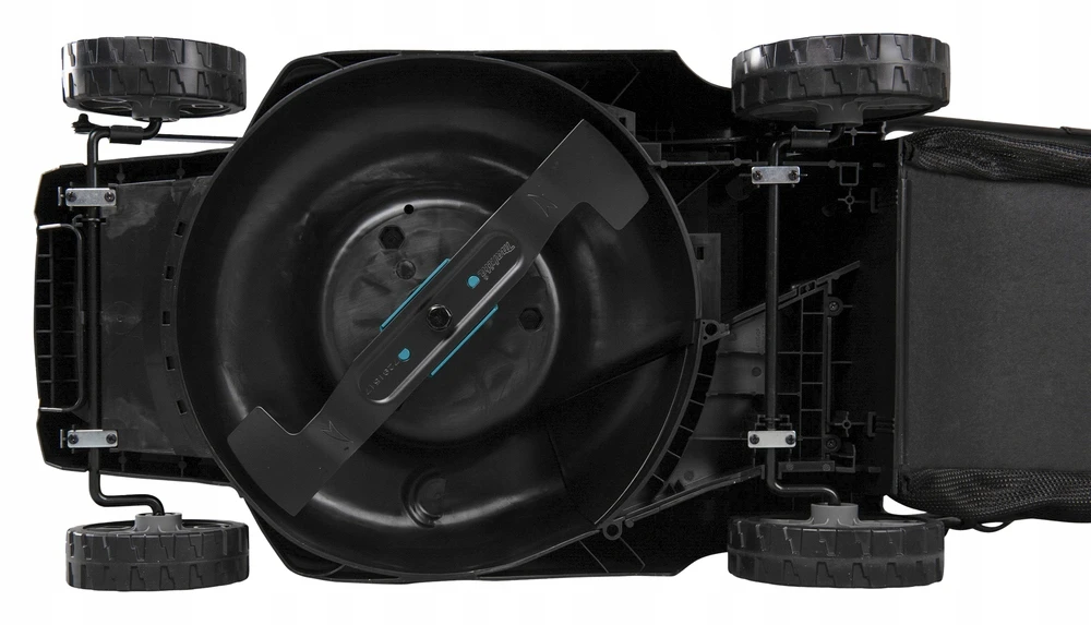 Kosz na trawę ze wskaźnikiem poziomu zapełnienia. 3 funkcje: cięcie, zbieranie i mulczowanie. Dioda informuje o niskim stanie naładowania akumulatora. Możliwość przechowywania w pionie.
