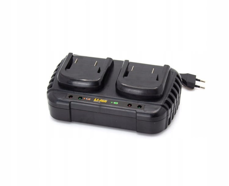 - Możliwość ładowania 2 akumulatorów jednocześnie
