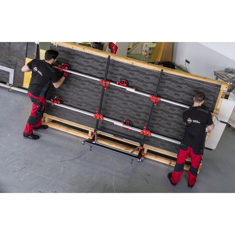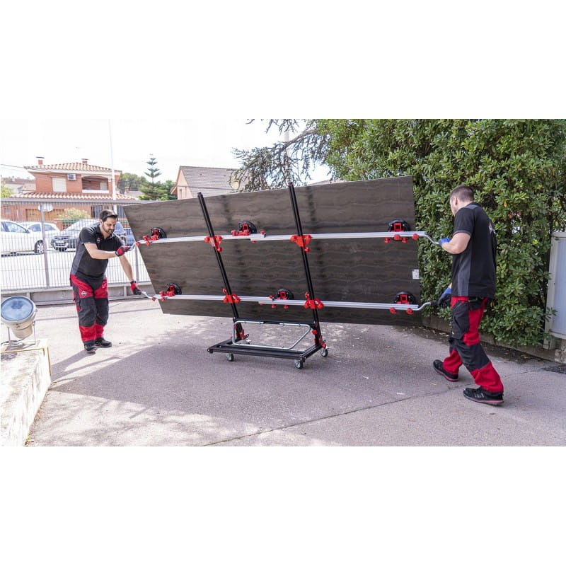 Model Slim EasyTrans Plus jest kompatybilny z WÓZKIEM SLAB (ref. 18934), co zwiększa bezpieczeństwo i ułatwia transport dużych płyt na placu budowy.