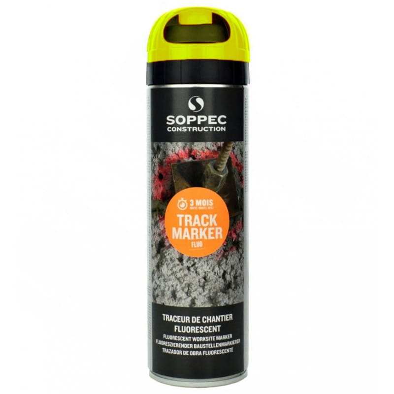 TRACK Żółta Soppec to fluorescencyjna farba znakująca 500 ml przeznaczona do oznaczeń budowlanych i geodezyjnych.