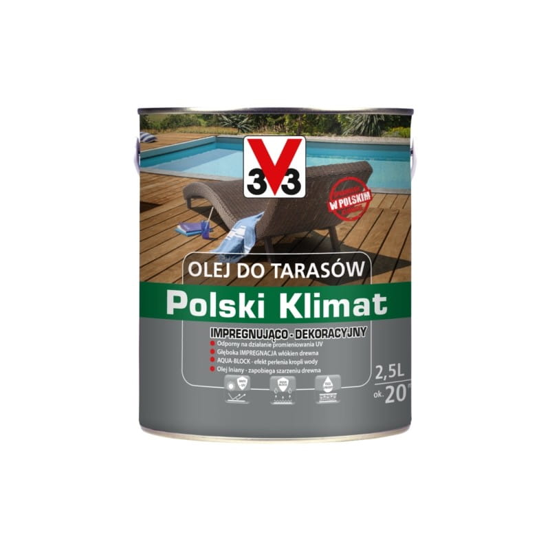 Wybierz V33 Olej do Tarasów Polski Klimat i zapewnij swoim drewnianym tarasom trwałą ochronę oraz naturalny, elegancki wygląd!