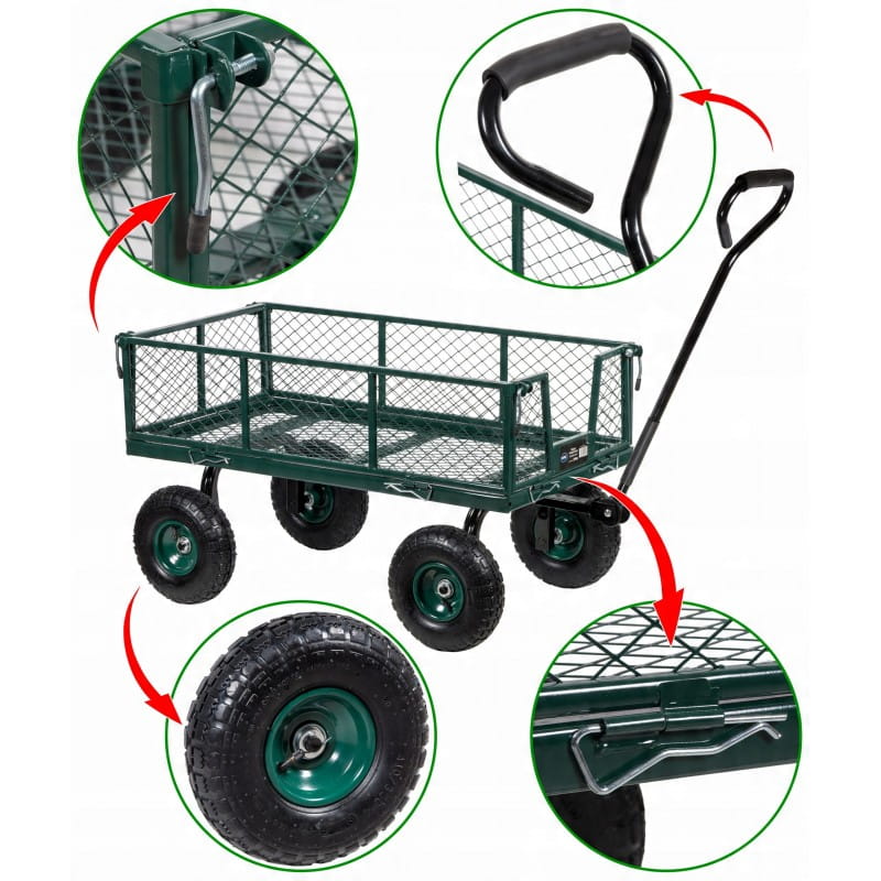 Idealny do przewożenia torfu, ziemi, trawy, narzędzi ogrodniczych oraz innych materiałów potrzebnych w codziennej pielęgnacji ogrodu.